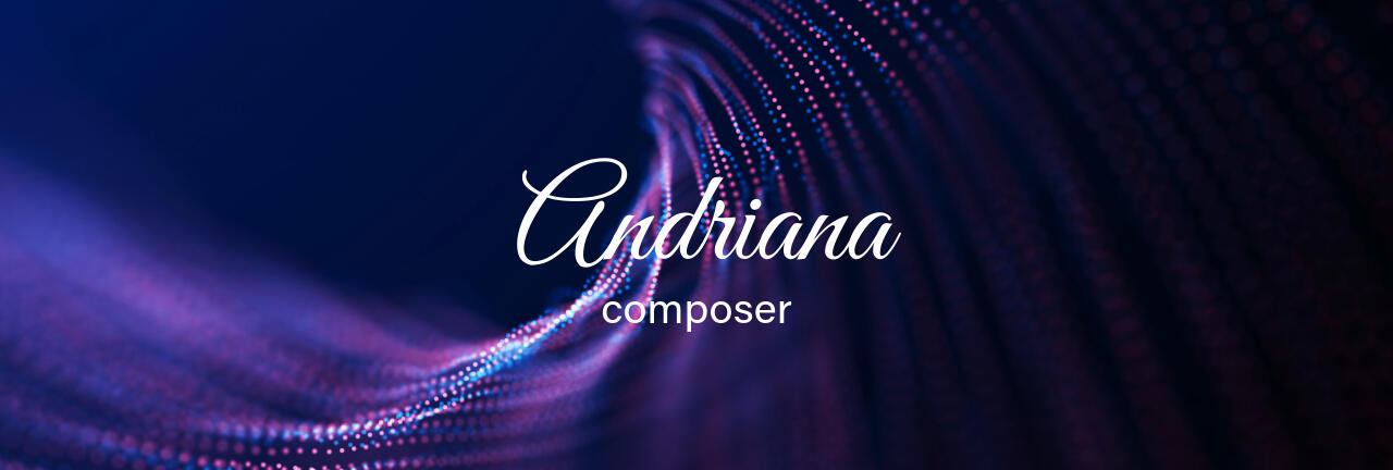 Andriana is a composer based in Athens, Greece.With a creative and positive approach, she explores fresh ideas and transforms them into expressive musical narratives for concerts, live performances, films, and visual media.She holds a Diploma in Music Composition, as well as studies in Fugue, Counterpoint, and Harmony from 'Orfeio Athinon' Conservatory (Athens, 2013 - 23).Andriana has studied Film Scoring at 'Ph. Nakas' Conservatory (Athens, 2012 - 14) and attended the 'Summer Intensive Performance' Program at Berklee College of Music (Boston, August 2011). She also holds an MSc in Structural Engineering from the University of Manchester (UK, 2009 - 10).She actively composes, orchestrates, and arranges music across a wide range of styles, from solo works to large ensemble and orchestral settings.
